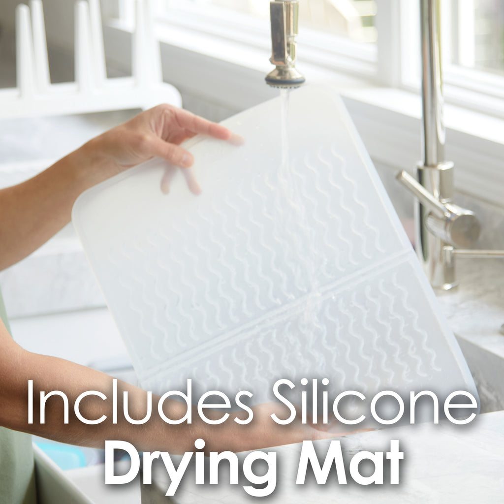 PopYum 9 oz Orange Formula Making Baby Bottle 3-Pk with White Drying Rack & Clear Drying Mat Bundle