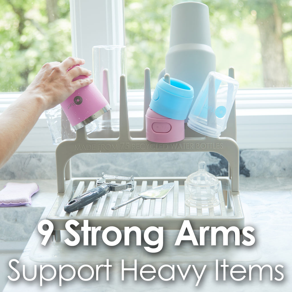 PopYum Seattle Gray Drying Rack from 100% Recycled Bottles with Silicone Drying Mat, countertop for Baby Bottle, Plastic Bags, Cups, Compact