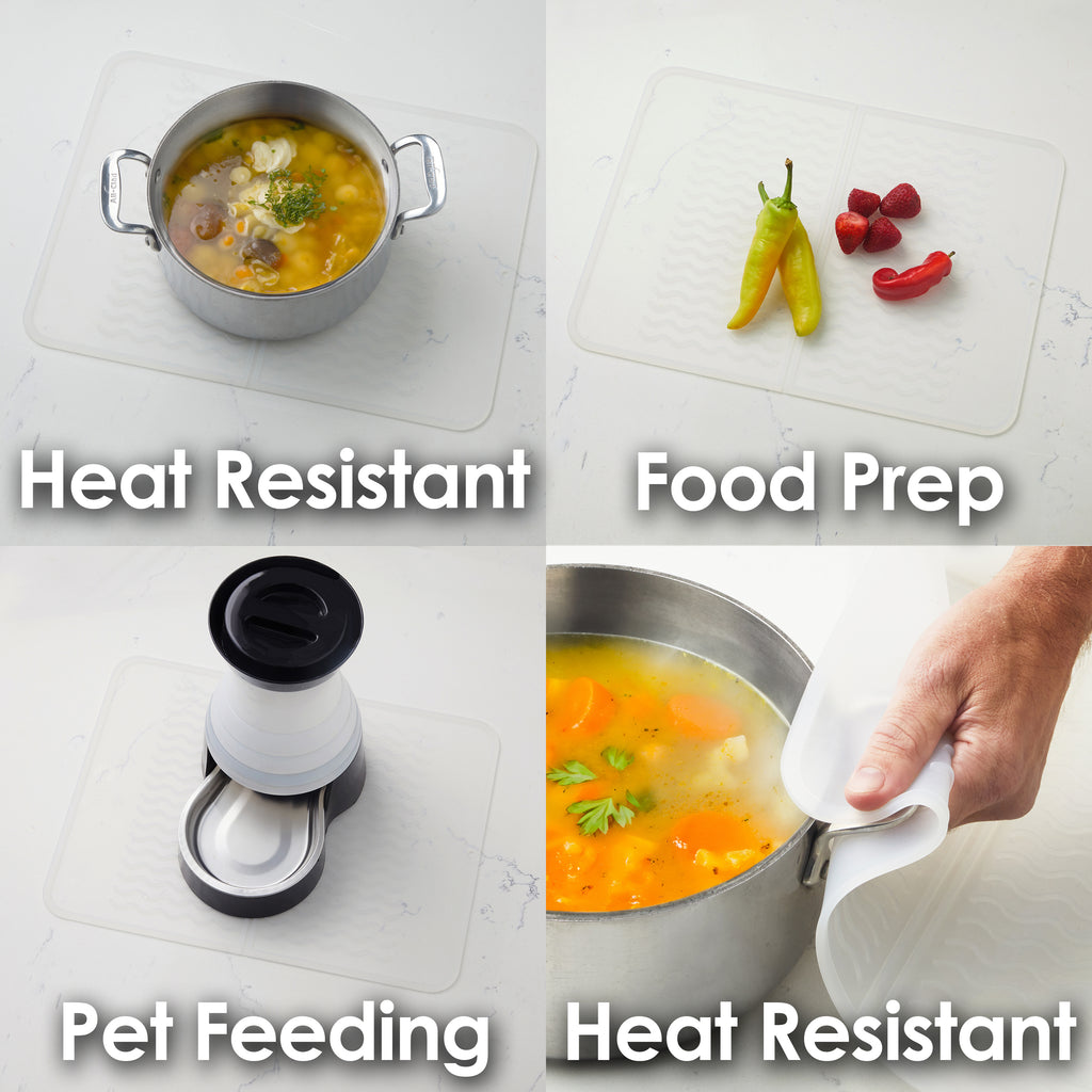 ✅ HEAT RESISTANT: Works well as a heat resistant mat to prevent countertop burn marks from very hot pots, pans, tea pots and more. Heat resistant to 450F (230C).